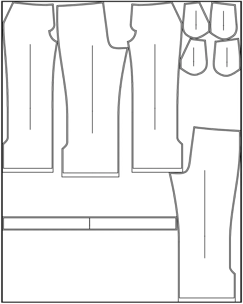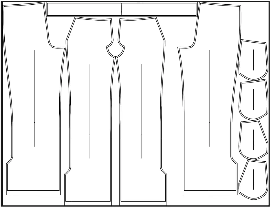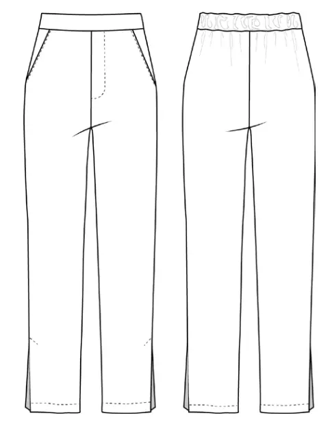 Pattern pieces already include 0.7 cm (1/4”) seam allowances for all edges. Adjust the length of the trousers according to your height.