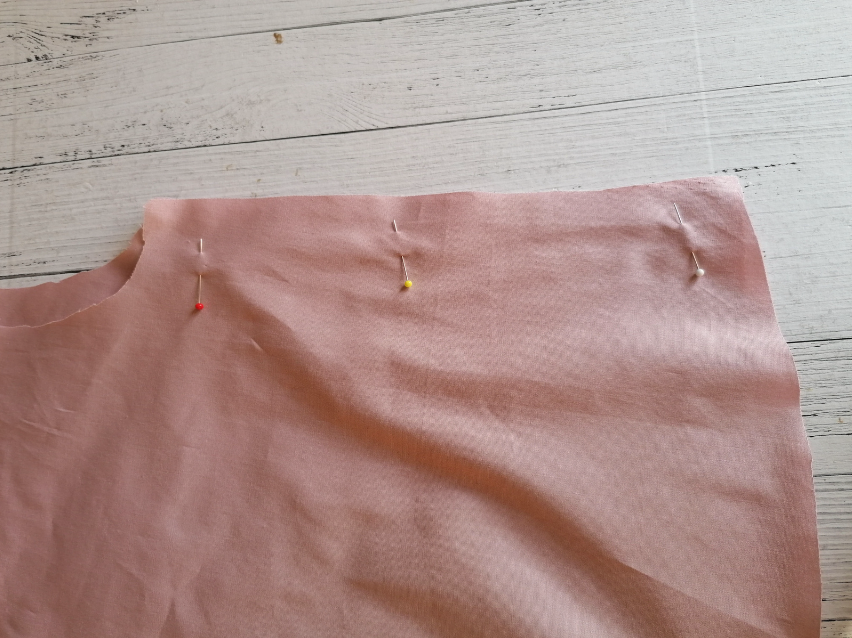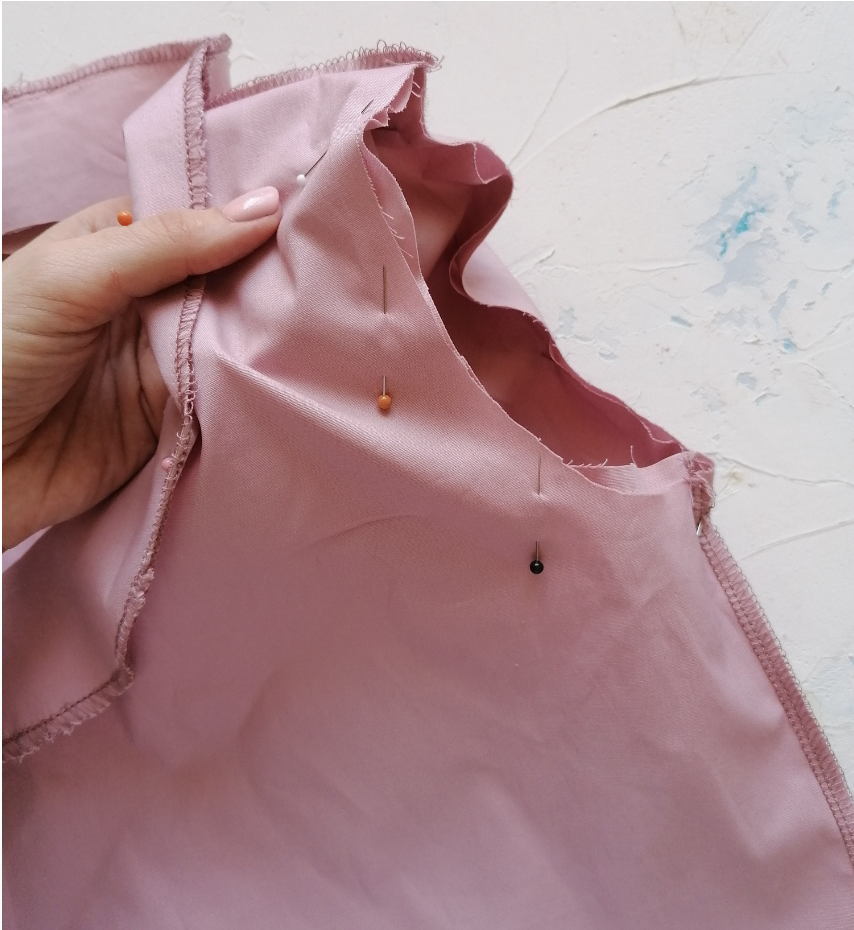 Pin the Front and Back along the shoulder edges with the right sides together.
