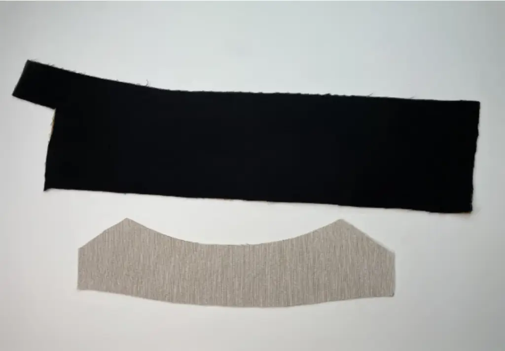 COLLAR. Pin the collar details together along the long edge, right sides together. Stitch it. Press seam allowances open.