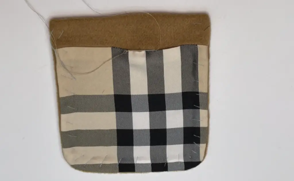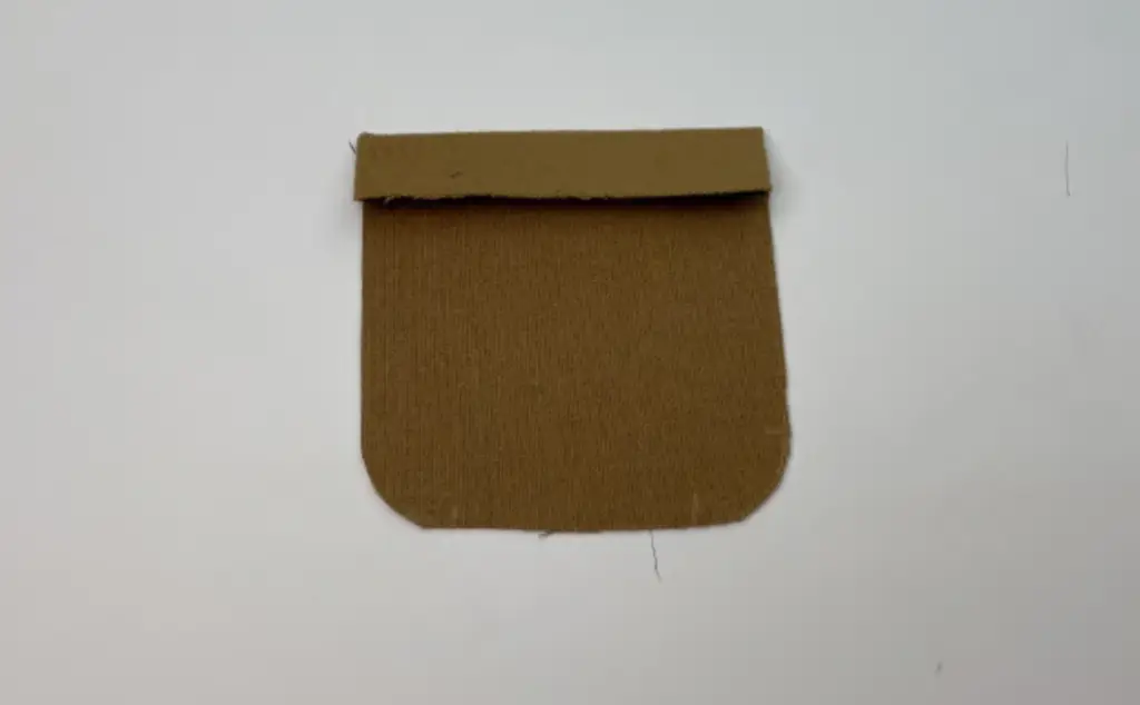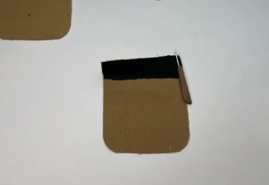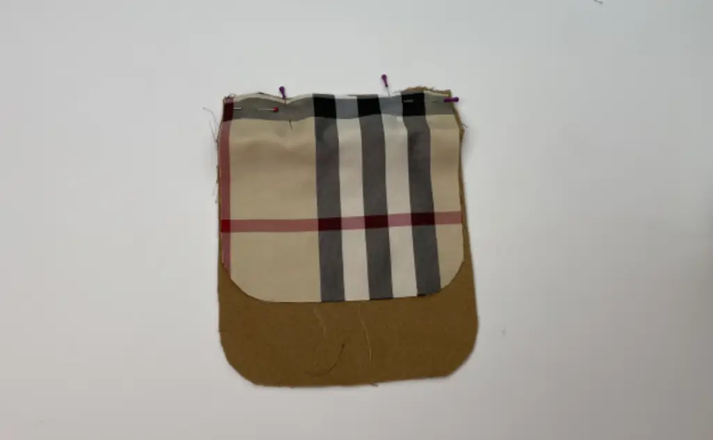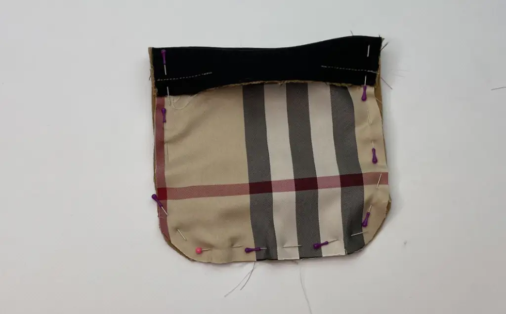 Pin the pocket lining to the pocket along the upper edge with the right sides together. Stitch it, leaving 3 cm (1,18 in) of turning out gap in the middle.