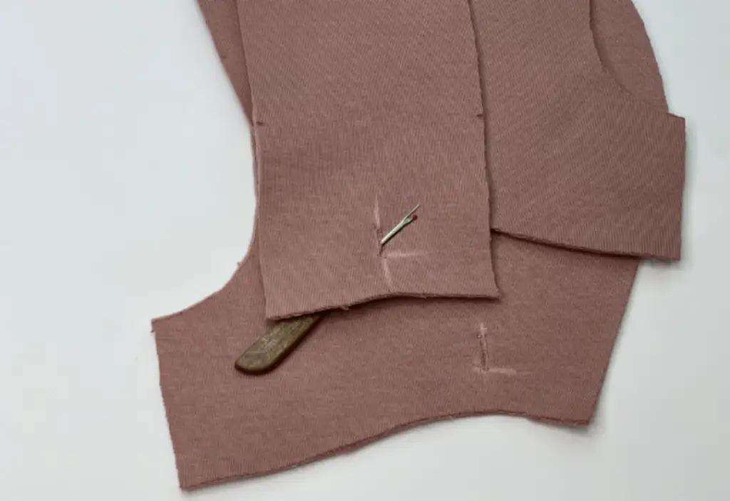 Turn the vent to the wrong side and align the markings. Chalk the line up to the corner and stitch along this line.