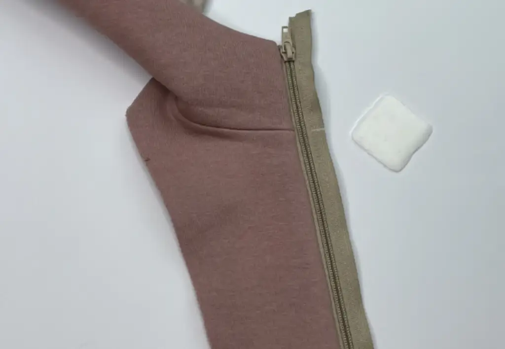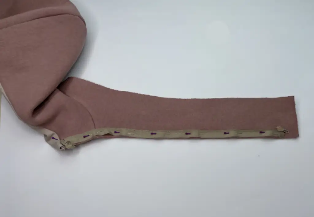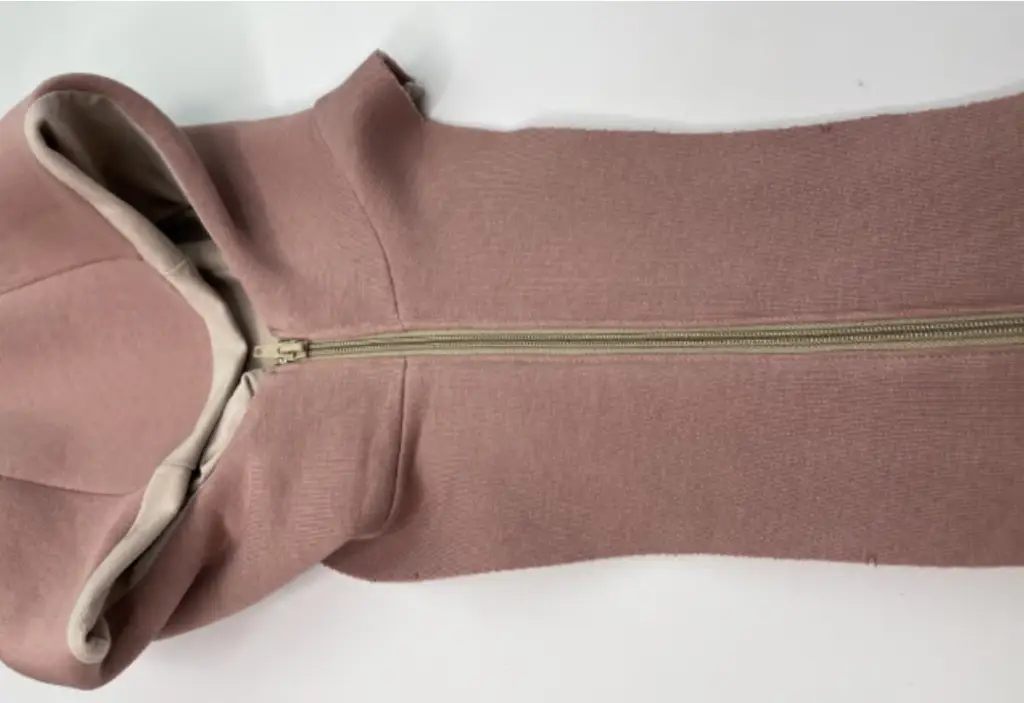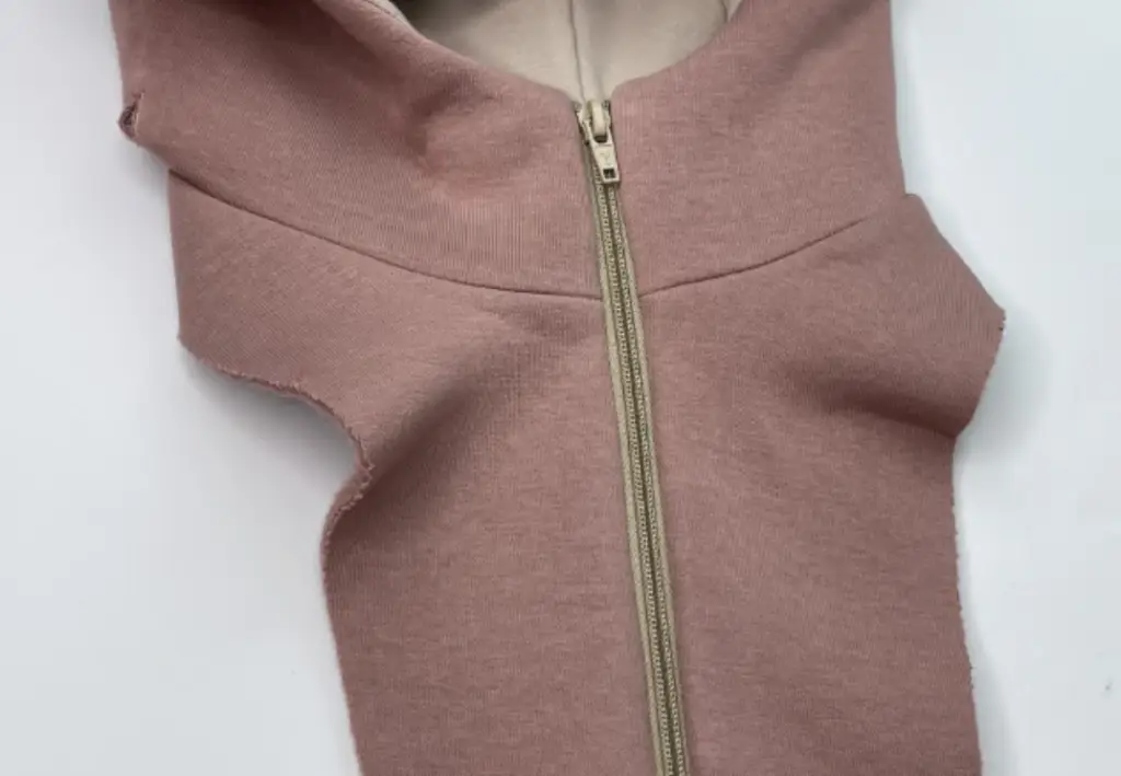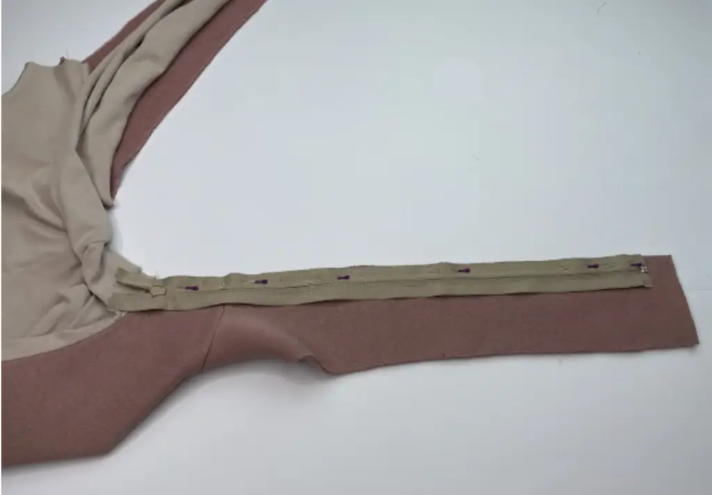 Lay the detachable hood and the bodice on the table and position the other zippers on the sides. Decide which part of the zipper sew to the bodice.