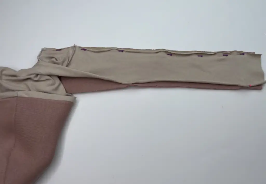 Fold the sleeve in half, right side together, and pin its side raw edges. Stitch it.