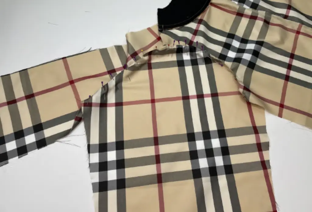 Pin the sleeve into the armhole, aligning the notches. Sew in place. Trim sleeve’s seam allowances.