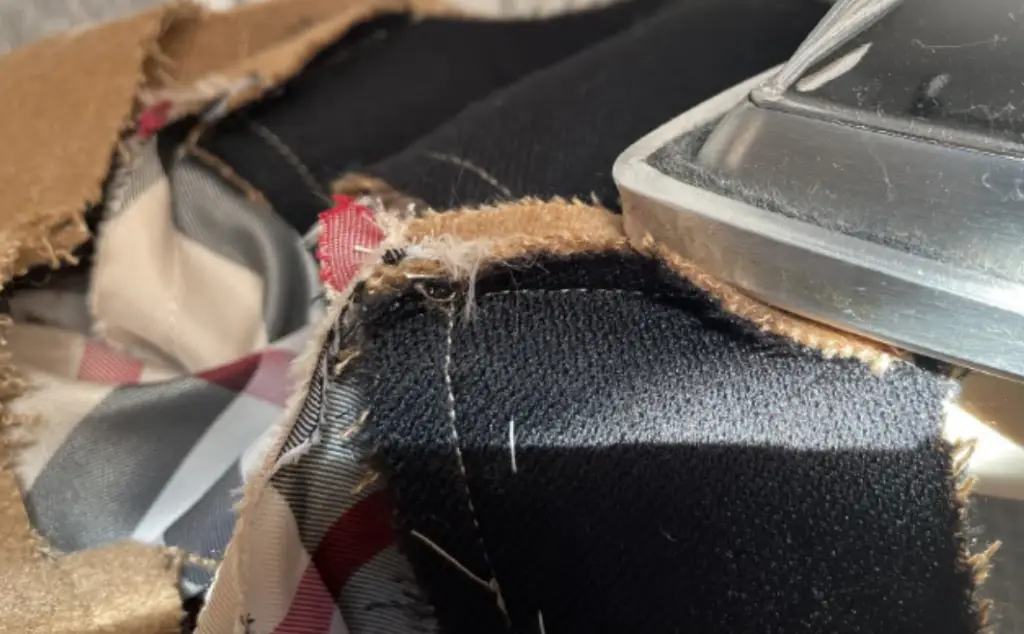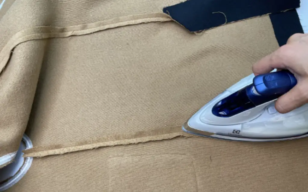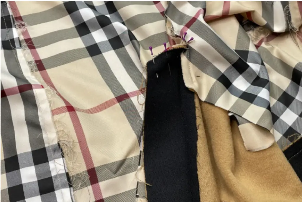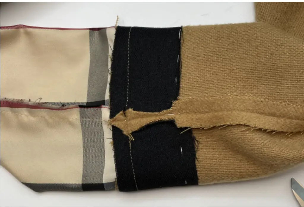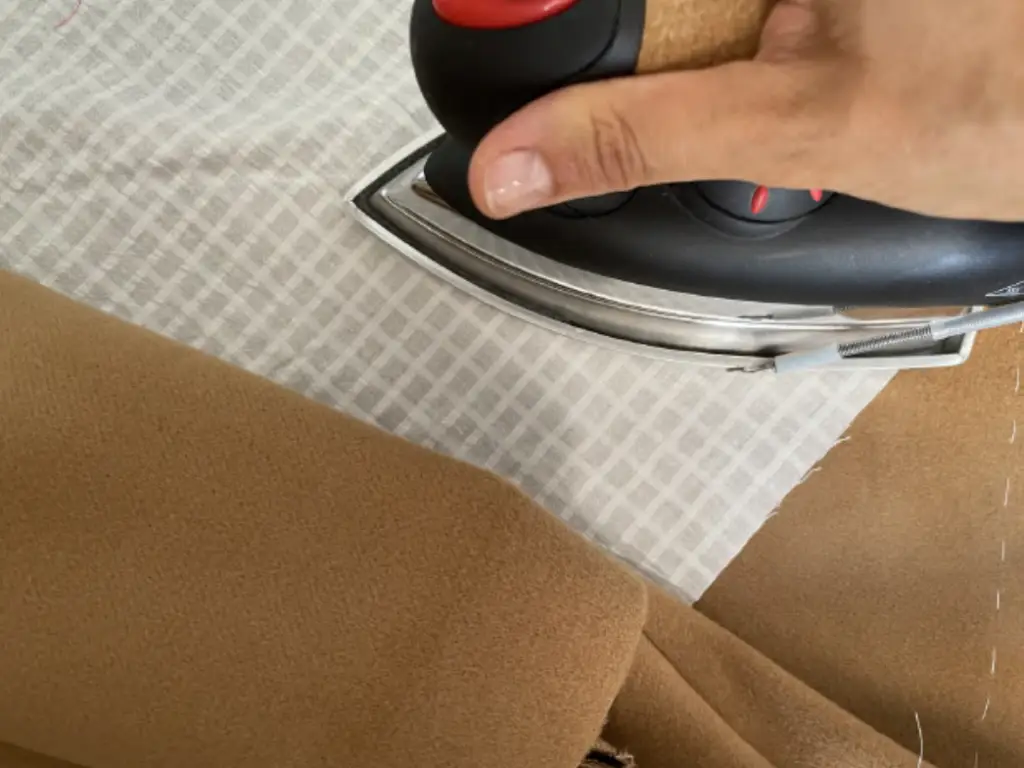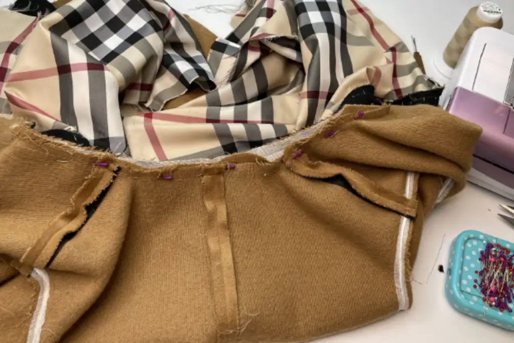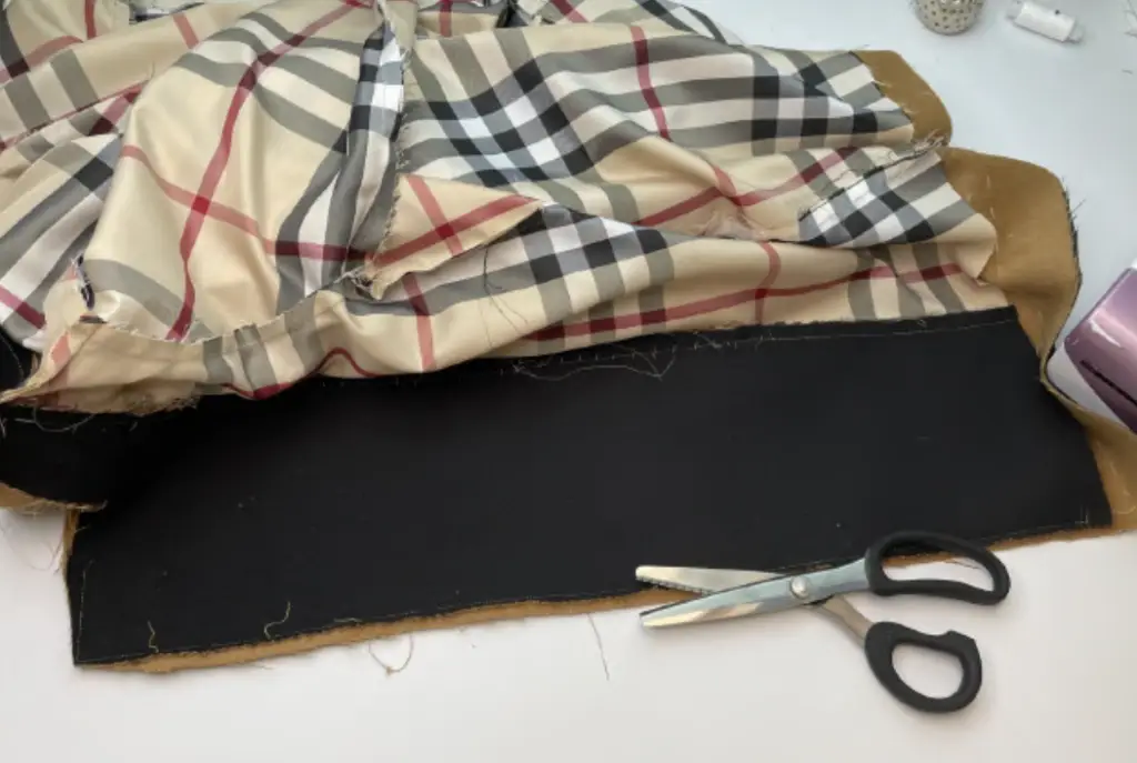 Pin the bottom hem of the inner vent and lining with the right sides together. Stitch 3-5 cm (1,18 – 1,97 in). Press seam allowances to the lining.