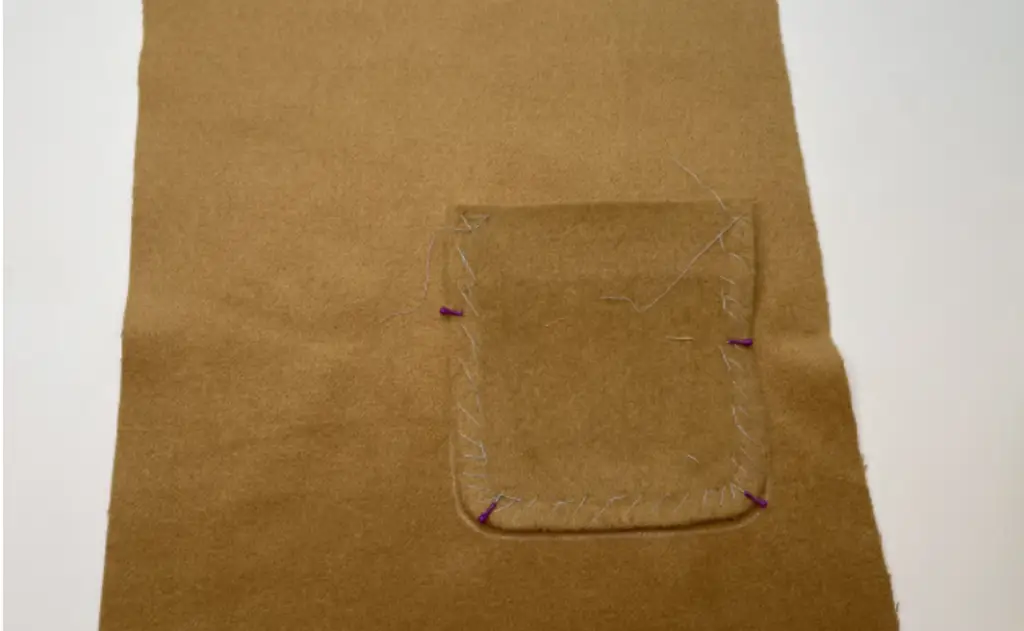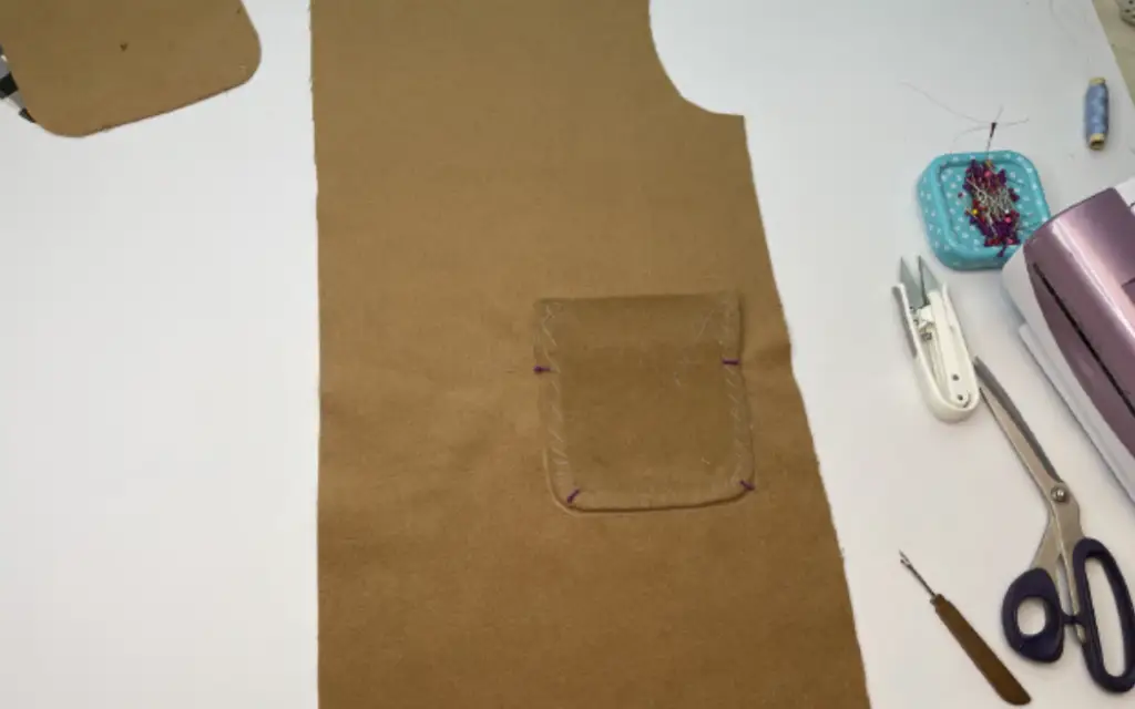 Chalk the pocket place on the Front panel. Pin the pocket along the lines.