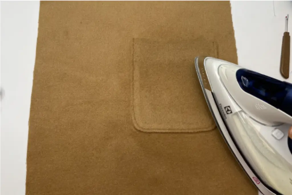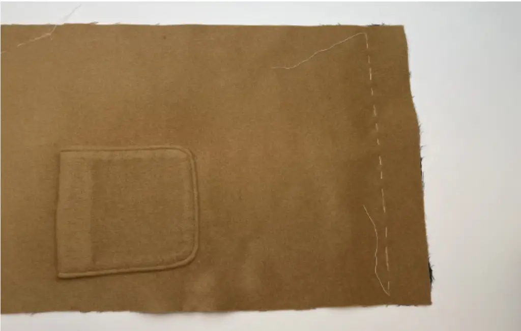 Turn the pocket to the right side. Baste stitch along the edge. Press it.