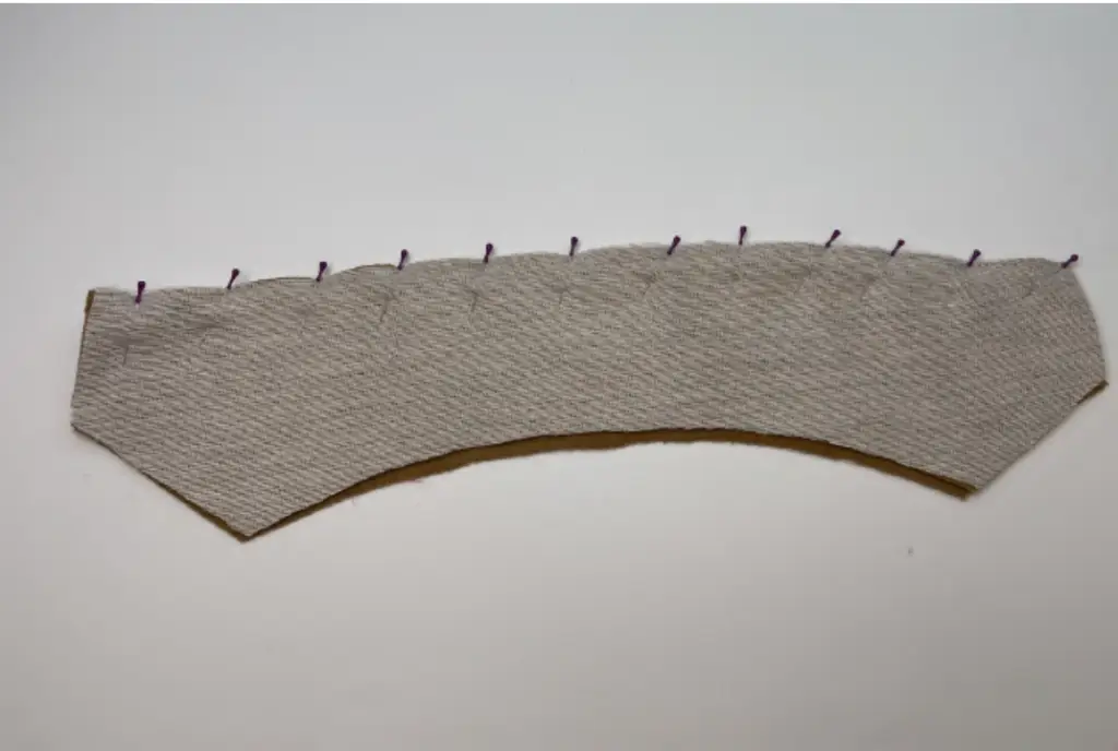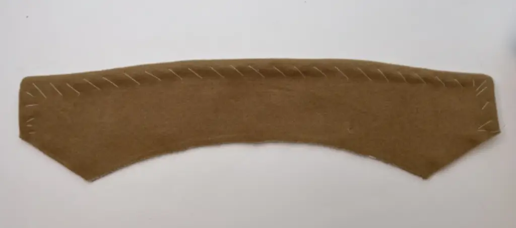 Turn the collar to the right side, aligning the bottom raw edges. Make diagonal baste stitching along the side and upper edges.