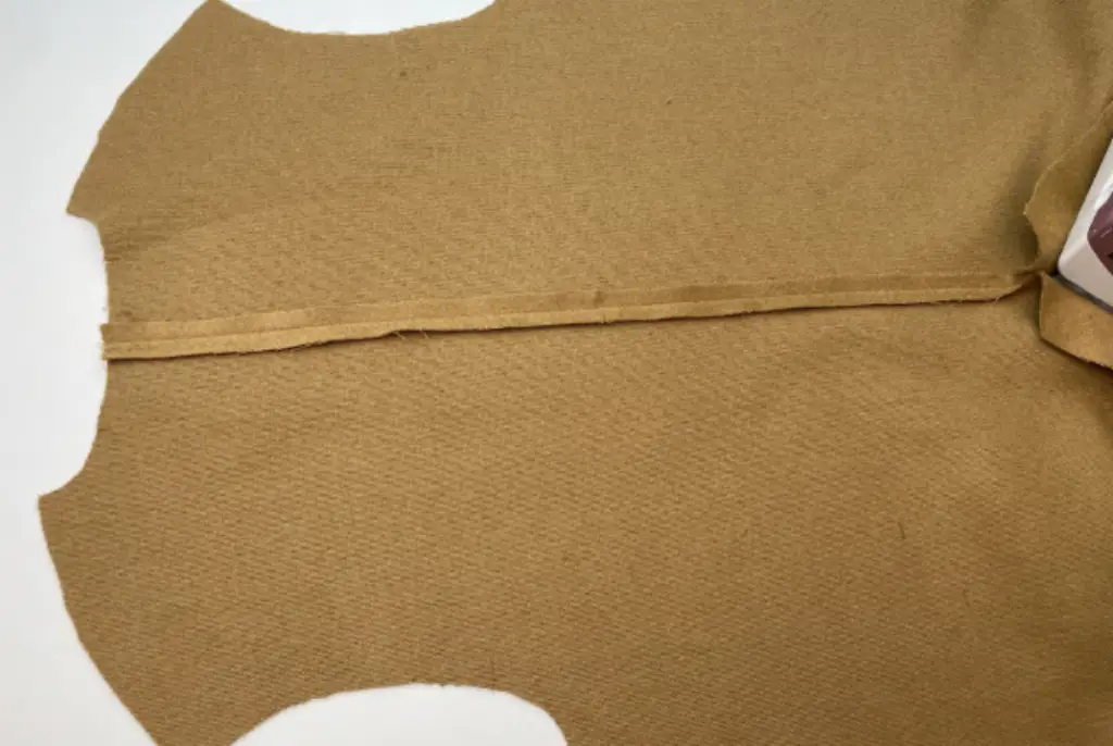 MAIN FABRIC. Pin the back details along the center edge, right sides together. Stitch it till the vent. Press seam allowances open.