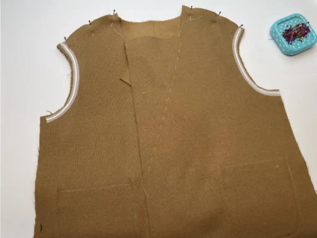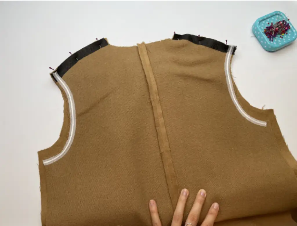 LINING. Pin the back panels with the right sides together along the center seam. Stitch it down to the notch. Press seam allowances to side.