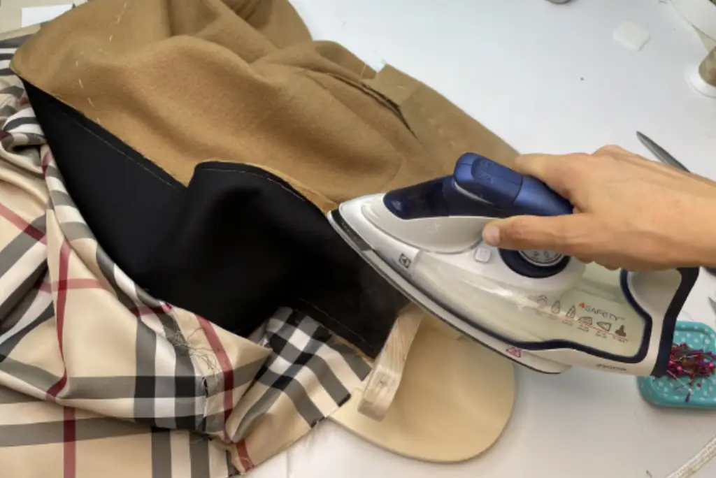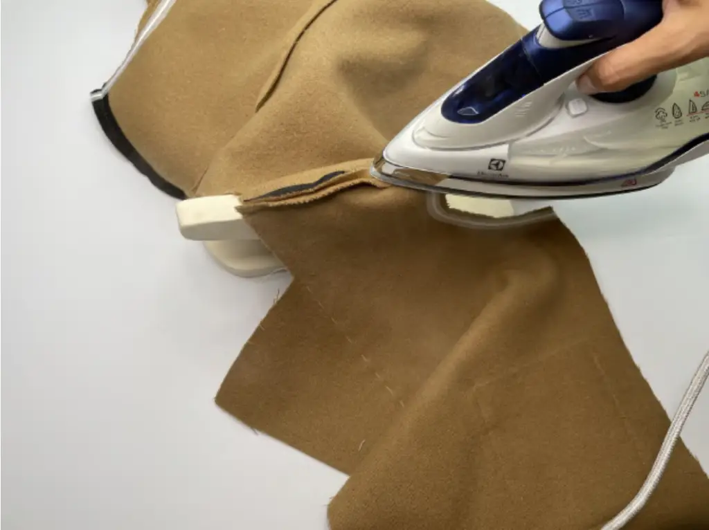 Fold and press the bottom hem of the coat. Inner vent fold to 0,3 cm (0,12 in) higher and press.