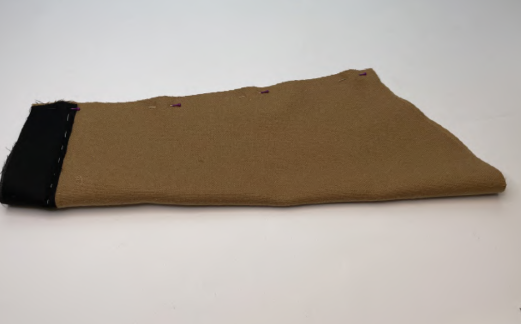 VENT. Pin the Lining and the vent along the upper edge, right sides together. Stitch it.