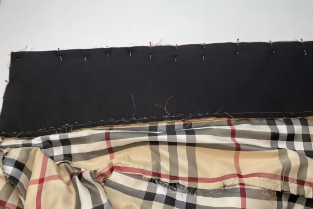 Pin the back facing to the lining back with the right sides together. Stitch it. Press seam allowances to the back.