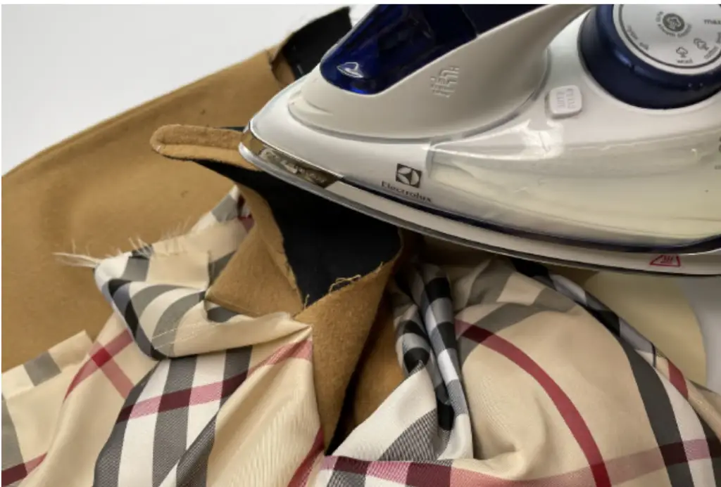 Lay the coat at the table , line up the vent.