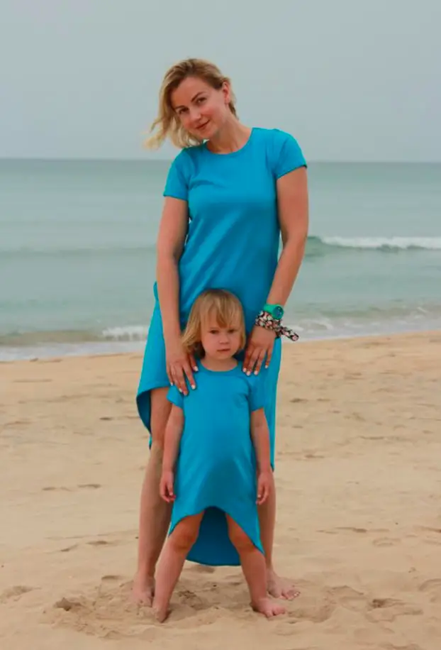 For sewing a T-shirt dress, choose fabric with a low content of elastane: soft jersey knit, interlock.
