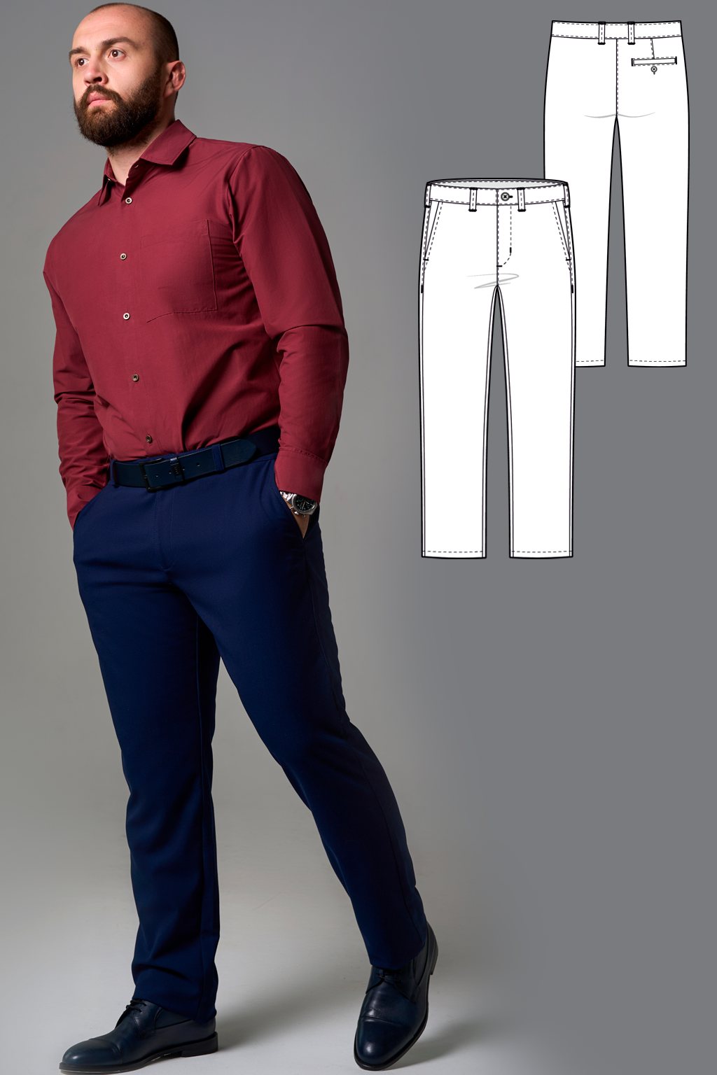 The set contains 3 formats of sewing patterns in pdf: A4 (210 x 297 mm), Letter (215,9 x 279,4 mm) and Plotter (A0 or 841 x 1189 мм), also a sewing guide and a men’s jumpsuit sewing instruction.